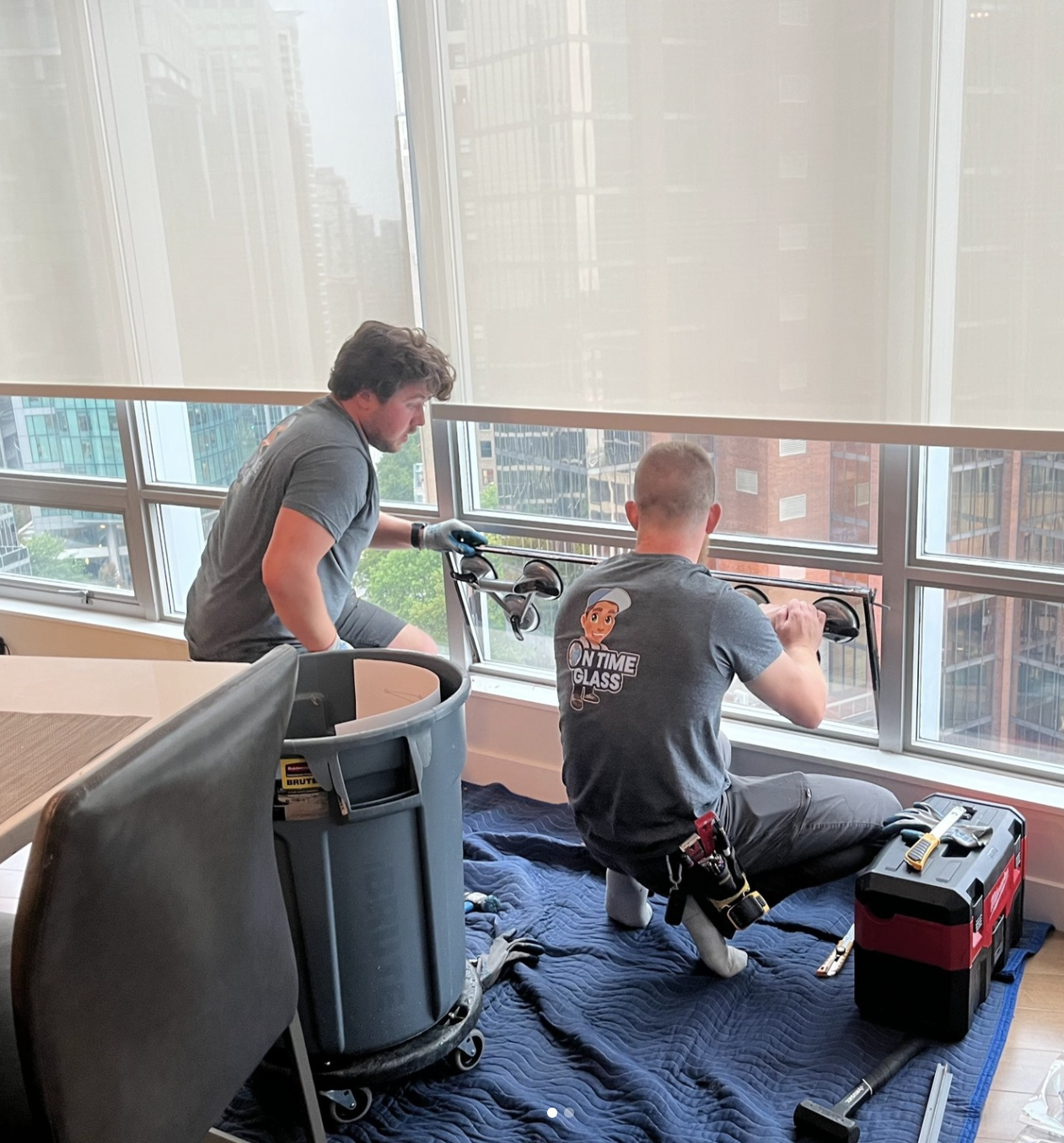 Window Replacement: From minor repairs to complete window replacements, On Time Glass handles it all, from minor repairs to complete window replacements. This includes fixing cracked, foggy, or leaking windows, repairing broken frames and hardware, and replacing sealed units. Our technicians are experienced with all window types. We ensure your windows look great, function perfectly, and keep your property secure.